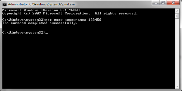 তার পর লিখুন net user %username% password এবার Enter চাপুন (“password এর জায়গাই আপনার পাসওয়ার্ড দিন”) দেখবেন কমান্ড কম্পিলিট দেখাচ্ছে ।