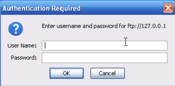 ২) এফটিপি তে যাওয়ার পর ftp://127.0.0.1 এ আমি উজারনেম এবং পাসওয়ার্ড এর জন্য একটি pop-up বাক্স দেখতে পাই।