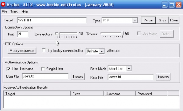 ৩) এরপর হ্যাকার পাসওয়ার্ড ক্র্যা-ক করার জন্য একটি প্রোগ্রাম চালু করবে। আমি এখানে Brutus ব্যাবহার করবো।