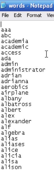 ৭) একটি ডিকশনারি অ্যাটাক এর জন্য পাসমোড ও শব্দ তালিকা বেছে নিতে হবে। ব্রাউজ করে শব্দ তালিকা ভুক্ত ফাইলটি বেছে নিতে হবে। তাহলে কিছু ভালো পাসওয়ার্ড পেতে পারেন। http://packetstormsecurity.org/Crackers/wordlists/