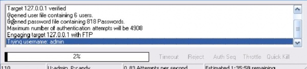 পাসওয়ার্ড যদি সহজ কিছু হয় তাহলে এই নিয়মে টা ক্র্যা-ক করা সম্ভব হয়। ডিকশনারি অ্যাটাকিং টুল একগুচ্ছ নির্ধারিত শব্দ বারে বারে লগিনের সময় ব্যাবহার করে। উদাহরণটি দেখলেই পরিষ্কারভাবে বুঝতে পারবেন। কঠিন পাসওয়ার্ড ক্র্যা-কিং এর ক্ষেত্রে এ পদ্ধতি কাজ করে না। নিম্নলিখিত উদাহরণে আমি একটি এফটিপি সার্ভারে ডিকশনারি অ্যাটাক দেখাতে Brutus ব্যাবহার করবো।