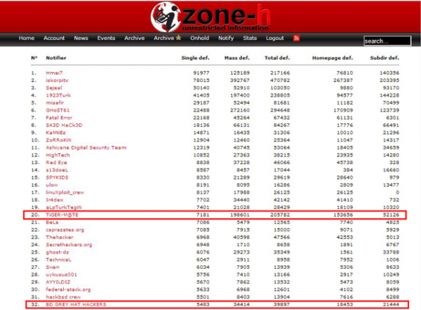 বাংলাদেশ গ্রে হ্যাট হ্যাকারস হোম ডিফেস দিয়েছে ৮৮৩৪টি, স্পেশাল ডিফেস বা সরকারি সাইট হ্যাক করেছে ৯৬০টি, ইউনিক আইপি বা সার্ভার হ্যাক করেছে ৩২৬৪টি এবং সব মিলে ডিফেস দিয়েছে ২৩১৩১টি।