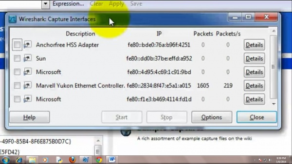সফটওয়্যার টা ওপেন করার পর আপনি উপরের চিত্রের মত করে ইন্টারফেস লিস্ট এ ক্লিক করুন ।তারপর নিচের চিত্রের মত আপনার নেটওয়ার্ক এডাপটারটি সিলেক্ট করে “START” এ ক্লিক করুন ।