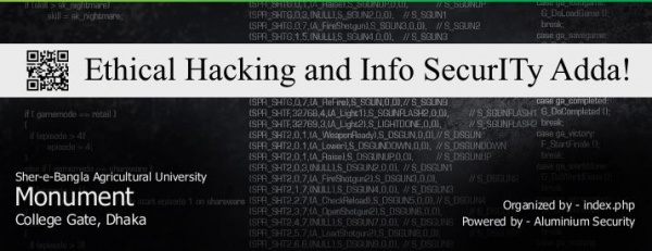 এবার সাধারণ মানুষের মাঝে তথ্য নিরাপত্তা ও ইথিক্যাল হ্যাকিং সম্পর্কে জানাতে এবং আড্ডা দিতে গত ৬ই জুন শেরেবাংলা কৃষি বিশ্ববিদ্যালয় প্রাঙ্গণে শুরু হয় উন্মুক্ত এই আড্ডা। তথ্য নিরাপত্তা ও ইথিক্যাল হ্যাকিং বিষয়ক এই আড্ডা আয়োজন করে তথ্য নিরাপত্তা বিষয়ক বাংলাদেশের প্রথম কমিউনিটি – index.php । তথ্য নিরাপত্তা ও ইথিক্যাল হ্যাকিং বিষয়ক এই আড্ডায় ঢাকা ও ঢাকার বাহির থেকেও অংশগ্রহণ করে বিভিন্ন মানুষ। বিভিন্ন হ্যাকার গ্রুপের সদস্যরাও যোগ দেয় এই উন্মুক্ত আড্ডায়। শেরেবাংলা কৃষি বিশ্ববিদ্যালয় এর শিক্ষার্থীরা সহ University of Information Technology & Sciences – UITS, United International University – UIU, Daffodil International University – DIU এবং State University of Bangladesh – SUB এর শিক্ষার্থীরা। রাত প্রায় ৮টা পর্যন্ত চলে – index.php এর এই জমজমাট আড্ডা।
