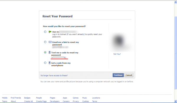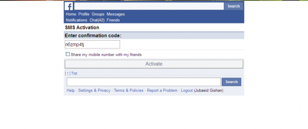 এটির জন্য আপনার প্রথমে লাগবে একটি সেলফোন নাম্বার যেটি কোন ফেসবুক আইডি এর সাথে সংশ্লিষ্ট নয় । সেই নাম্বার থেকে আপনাকে FB লিখে 32665 নাম্বারে পাঠাতে হবে । ফিরতি এস এম এস এ আপনাকে একটি ভেরিফিকেশান কোড এবং একটি ইউ আর এল পাঠাবে ।
