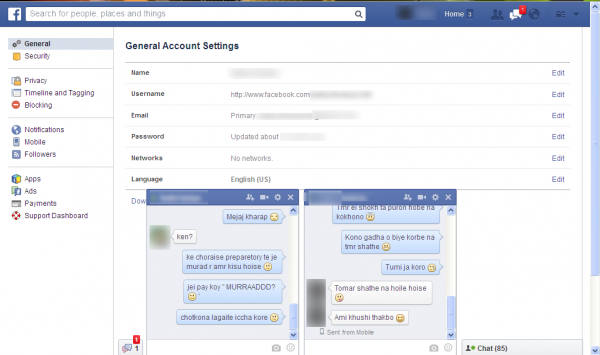 এরপর ফেসবুক আপনাকে লগিন এর মাধ্যমে ভিক্টিম এর সেটিংস পেজে নিয়ে যাবে । যেই আইডি দিয়ে এই টিউটোরিয়াল তৈরি করলাম । সেটি একটি মেয়ে এর আইডি ছিল । এবং সে সেই সময় চ্যাট করছিল । আমি তাই কিছু না করে তার লাইভ চ্যাট করা দেখছিলাম । কিছুক্ষণ পর সে লগ আউট করলে আমি পুরো নিয়ন্ত্রণ নিয়ে নেই । যেহেতু আমি পাসওয়ার্ড রিসেট করার সময় সব ডিভাইস থেকেই লগড ইন ছিলাম তাই সে ঘূর্ণাক্ষর এও টের পায়নি যে কি হয়েছে ।