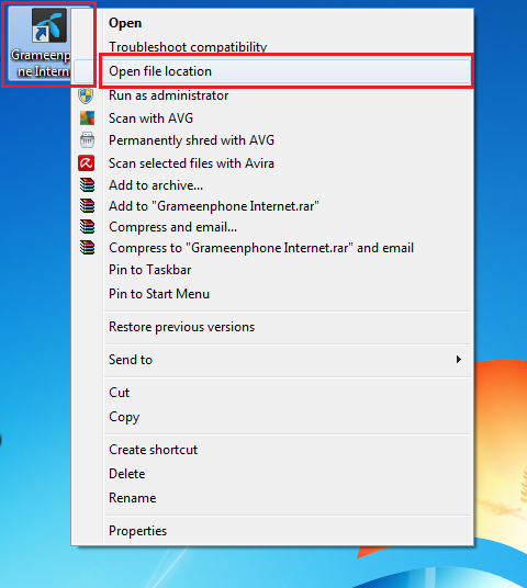 প্রথমে আপনার মডেমের আইকনের উপর ডান বাটন ক্লিক করে নিচের মত সিলেক্ট করুন ।