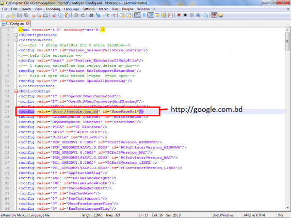 এবার প্রথম এর Config ফোল্ডারের ভেতরের প্রথম ফাইলটা নিচের মত করে Notepad দিয়ে অথবা যে কোন Text editor দিয়ে ওপেন করুন । আমি এখানে Notepad++ ব্যাবহার করেছি ।