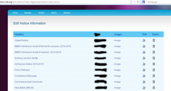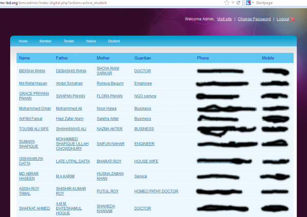 এটা ঢাকা মেডিকেল কলেজের ডাটাবেস।। থাক আর বেশি বারালামনা।নামগুলা প্রকাশ করলাম না।। এতক্ষুন এতকিছু বলার এক্টাই কারন হল আমাদের বাংলাদেশের ওয়েবসাইটগুলা কি উন্নত করা যায়না যেখানে হ্যাঁকারদের হ্যাক করতেও বাপ বাপ বলে ডাকতে হবে>> ডিজিটাল বাংলাদেশ গোড়তে আমাদের ডিজিটাল জিনিসগুলাও তো সিকিউরেড হতে হবে তা না হলে যে সব চুরি হয়ে জাবে।।আর আমরা কলা মুখে দিয়ে বসে থাকব।।