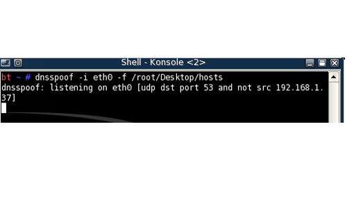 DNSSpoof এর মাধ্যমে এই পর্যায় এ হ্যাকার ডি এন এস স্পুফিং শুরু করবে ।