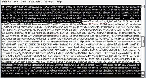 এখন আপনার ডেটা ডিক্রিপ্ট করার পর হ্যাকার জেনে যাবে যে আপনার নাম আর পাসওয়ার্ড কি ছিল । সেই সাথে আপনি কোন ব্যাংক থেকে পেমেন্ট করছেন এবং আপনার অ্যাকাউন্ট নাম্বার কত সেটিও সে পেয়ে যাবে । এখন এই ইনফরমেশান হ্যাকার এর কাছে চলে আসলে সে সেটি যেকন ভাবে ব্যাবহার করতে পারে । নিচের ছবিটি দেখুন যেখানে ডিক্রিপ্টেড ডেটা থেকে দেখা যাচ্ছে , কার্ড এর মালিক Elvis Prislyr নাম এবং শহর NY এবং তার কার্ড এর নাম্বার 5440123412341234