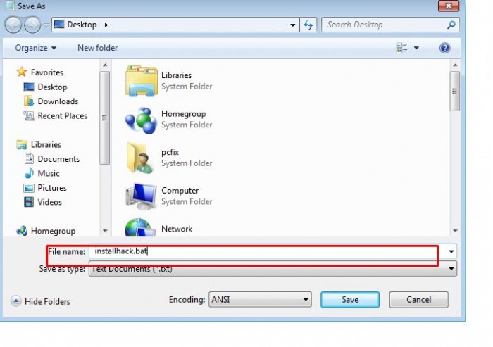 তারপর এটা আপনার পিসির যে কোন এক যায়গায় installhack.bat নামে সেইভ করুণ