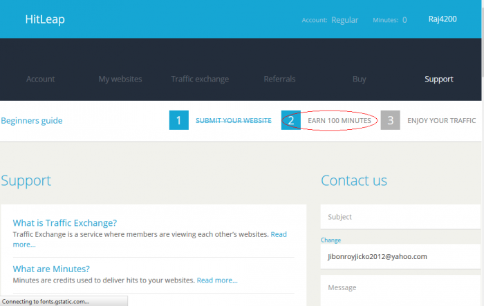 এখানে Account খুলে আপনি দিনে অনেক Hit পাবেন আপনার Link এ.খোলার পর দেখুন উপরে Min এর ওখানে 0.