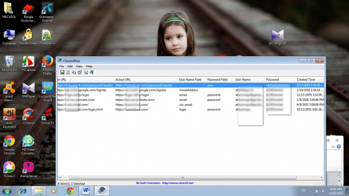 ফাইলগুলো আগে ডাউনলোড করে নিন। এবার ফাইলগুলো Extract করে নিন। এর ভেতরে আপনার কাংখিত পাসওয়ার্ড ভাউয়ার টি দেখতে পাবেন। এবারা ডাবল ক্লিক করে রান করান। যেমন আমি Chrome Pass viewer টি রান কলালাম। কি দেখতে পেলেন ! আপনার সামনে ব্রাউজারের সকল সেভ করা পাসওয়ার্ড এসে হাজির। নিচের স্কিনশটটি দেখুন।