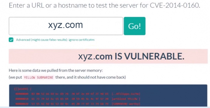সাইট কিভাবে হার্ট ব্লিড এ আক্রান্ত হয় তা নির্ণয় করার জন্য আমরা অনেক রকম এর মেথড রয়েছে তার মধ্যে সবচেয়ে সহজ পদ্ধতির কথা আমি বলছি সেটা হল এই বাগ টি নির্ধারণ করার জন্য একটি সাইট রয়েছে সাইটির নাম হল filippo.io এখানে আপনি আপনার লিঙ্কটির HTTPS এবং WWW টুকু বাদ দিয়ে বাকি অংশ টুকু দিন যেমন xyz.com