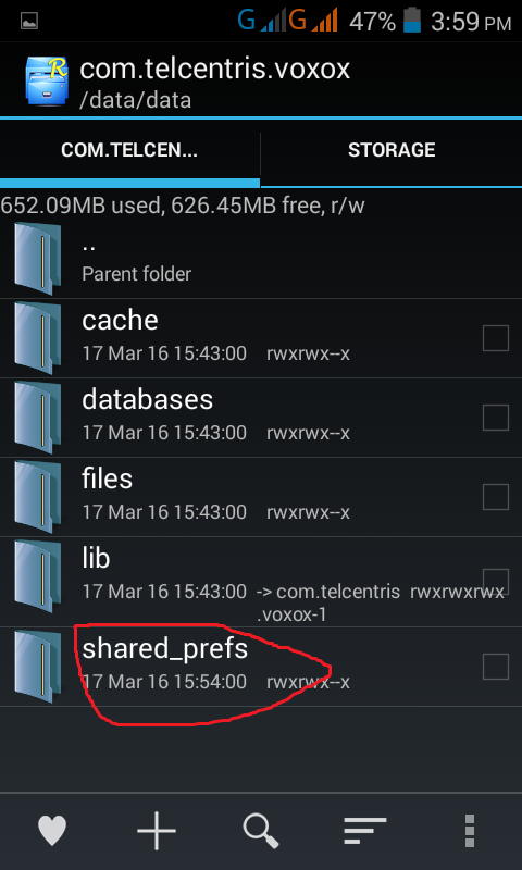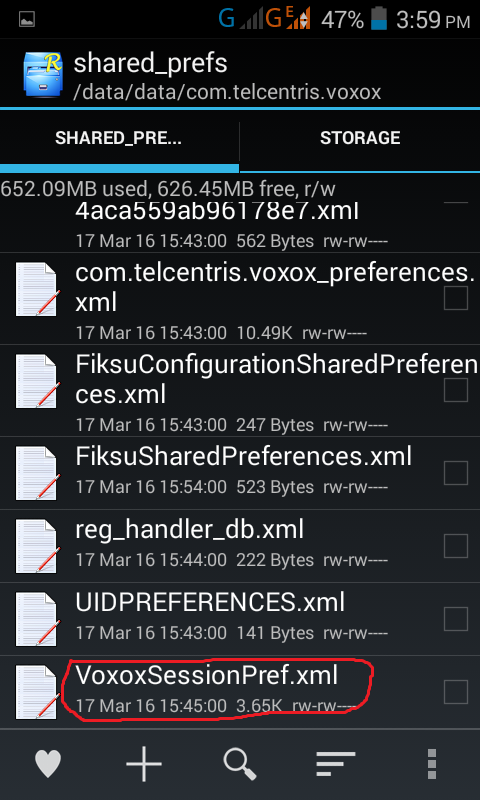 VoxoxSessionPref.xml নামের ফোল্ডারটি চেপে ধরুন।