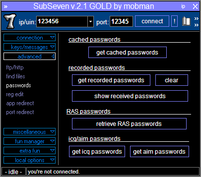 এটি অত্যন্ত শক্তিশালী ট্রোজান হর্স।। কোনো পিসিতে রান করাতে পারলে সেই পিসি আপনার হাতের খেলনা হয়ে যাবে। prorat এর মতই এটিও অনেক শক্তিশালী এবং এটি দিয়ে পিসির বড় ধরণের ক্ষতি করা সম্ভব। ১ মেগাবাইটেরও কম এই ট্রোজান হর্সটি ডাউনলোড করুন এখান থেকে।