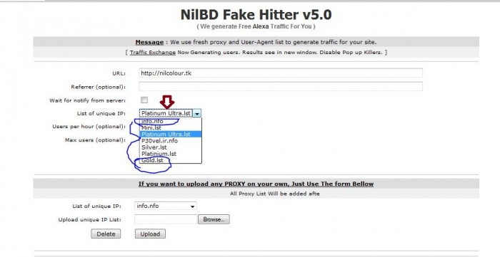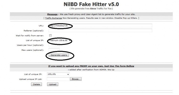 ষ্টার চিন্হিত ঘরে প্রথমে আপনার সাইটের ঠিকানা এবং পরে যেকোন একটি আইপি লিষ্ট সিলেক্ট করুন । নিচের ছবি অনুযায়ী গোলাকার ঘরগুলো পূরন করে Generate users বাটনে ক্লিক করুন ।
