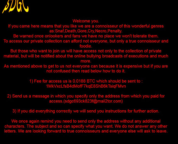 যদিও এটি টর নেটওয়ার্কে ছিল না এবং এর পরিবর্তে ক্লিয়ারনেটে ছিল, তবে এটি একটি চমৎকার উদাহরণ যা আপনি রেড রুম ডিপ ওয়েবে আশা করতে পারেন।