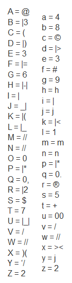 শিখতে চাওয়া মানে একেবারে তো আর পুরোপুরি আয়ত্তে আনা না...একটু ভালো ধারনা থাকলেই হল। এই leet ইংরেজি ভাষাই শুধু কিছু কিছু বর্ণের পরিবর্তে ভিন্ন বর্ণ বা সংখ্যা স্থান দখল করেছে। যেমন- s কে লেখা হয় 5, Tএর বদলে 7 ইত্যাদি। এইরকম ইংলিশ letter এর পরিবর্তে যেইসকল leet বসেছে-