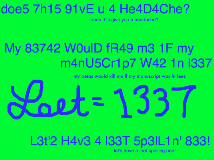 leet কে leetspeak বা l33t বা 1337 -ও বলে। এটি আসলে ইংরেজি শব্দগুলোরই কিছুটা বিকৃত ও সংক্ষিপ্ত রূপ। সহজ কথায় বলতে গেলে এটির আর্বিভাব ঘটেছে ১৯৮০ সালের দিকে। সর্বপ্রথম হ্যাকাররা তাদের ফোরাম বা ব্লগে এই leet ব্যবহার শুরু করে যেন তারা ছাড়া অন্য কেউ বুঝতে না পারে। তবে আজকাল বিভিন্ন গেমেও এই leet ঢুকে পড়েছে। শুধু তাই নয় চ্যাটিংয়েও এটি আমরা প্রায় নিয়মিত ব্যবহার করি। চ্যাটিংয়ে আমাদের খুব পরিচিত শব্দ