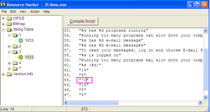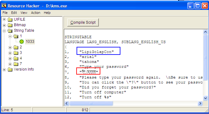 আপনি সরাসরি বাংলায় লেখাটি Resource hacker মধ্যে লিখত পারবেন না কেননা এটি Unicode সার্পোটেট না তাই অন্য কোথায় থেকে লিখে পেষ্ট করে দিলে হবে ও Compile script বটনে ক্লিক করলে অন্য কিছু দেখালেও আসুবিধা নেই।