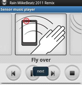 download করা হয়ে গেলে sensor music player টি open করুন এবং "fly hand over the phone" image টিতে touch করুন।