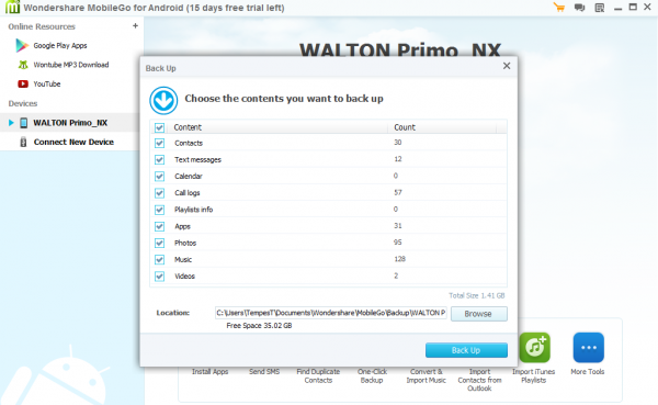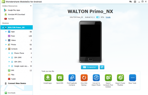 মোবাইলে যা কিছু আছে তা ব্যাকাপ করতে চান ?? One Click BackUp এ ক্লিক করুন।