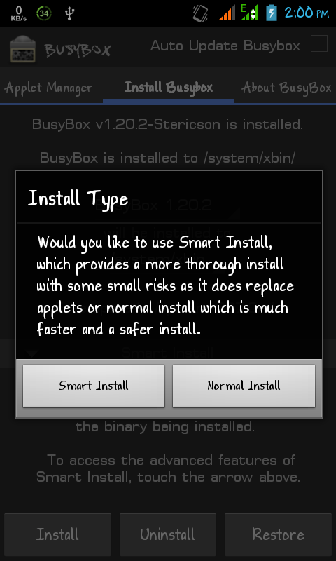 # এরপরে BusyBox লোড হওয়া শুরু করবে...১০০% লোড কমপ্লিট হলে, Install >> Normal Install (নিচের স্ক্রিনশট গুলি দেখুন)