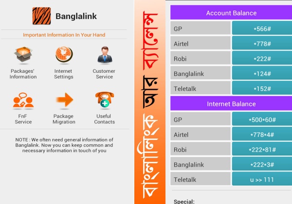 অনেক সময় এমন হয়, ইন্টারনেট প্যাকেজ নিবেন কিন্তু জানা নেই কি লিখে কত তে SMS করতে হবে, FNF add করবেন জানেন না কি লিখে কত তে SMS করতে হবে, ইন্টারনেট এর মেগাবাইট কত অবশিষ্ট আছে জানার প্রয়োজন হয় কিন্তু ভুলে গেছেন কত লিখে ডায়াল করবেন এগুলোর জানার জন্য প্রায়ই আমাদের কাস্টমার কেয়ার এ ফোন করে টাকা নষ্ট করতে হয়। আর আপনার টাকা খরচ হবে না, তাই আপনাদের সুবিধার জন্য দারুন একটা Apps নিয়ে এসেছি, এই Apps দ্বারা আপনি বাংলাদেশের বর্তমান সকল মোবাইল ফোন অপারেটর এর যাবতীয় তথ্য এই Apps এর মাধ্যেমে জানতে পারবেন। শুধুমাত্র সিটিসেল ছাড়া।
