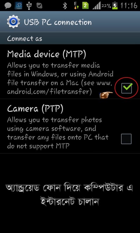 প্রথমে Media Device (MTP) এখানে টিক চিহ্ন দিন।