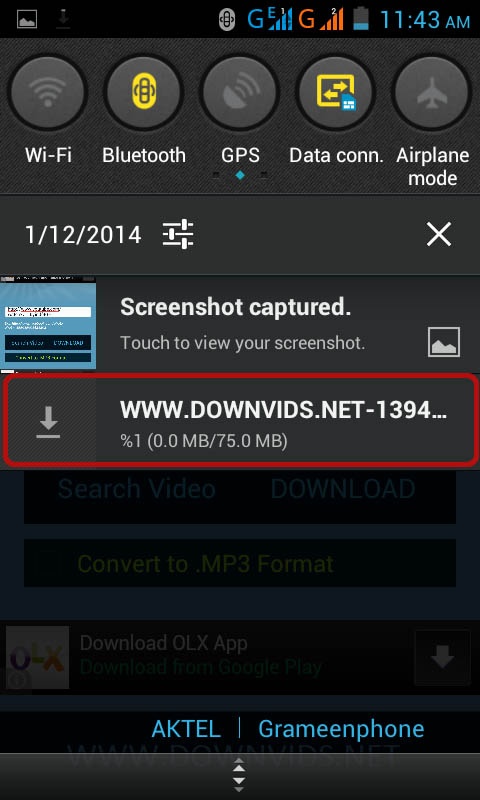 এবার Download বাটনে ক্লিক করুন, তাহলে ভিডিও টা ডাউনলোড হবে, আপনার নোটিফিকেশন বারে দেখতে পাবেন, নিচের মত করে।