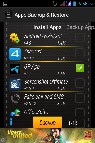 ৫। যে সফওয়্যারটির apk ফাইল পেতে চান সেটি মার্ক করে Backup-এ ক্লিক করুন।