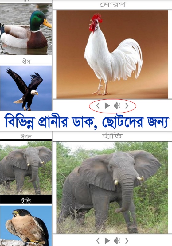 ৩। Aminal Sound Bangla: শিশুরা যদি উপরের বর্নগুলো পড়তে পড়তে আর ভাল না লাগে তাহলে তাদের, কিছু পশু – পাখির শুনালে তাদের ভাল লাগবে। ডাউনলোড করতে এখানে ক্লিক করুন ।