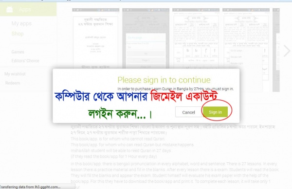 এবার ইন্সটল বাটনে ক্লিক করুন, এবার Sign In বাটনে ক্লিক করে আপনার জিমেইল একাউন্ট দিয়ে লগইন করুন।