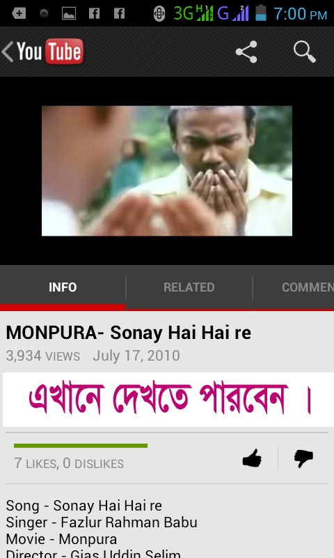 এবার আপনি Search You tube Video বাটনে ক্লিক করে আপনার পছন্দের গানটি দেখুন/ডাউনলোড করুন।