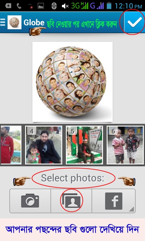 এবার Select Photos বাটনে ক্লিক করে আপনার পছন্দের ছবিগুলো দেখিয়ে নিচের দেখানো মত টিক চিহ্ন বাটনে ক্লিক করুন।