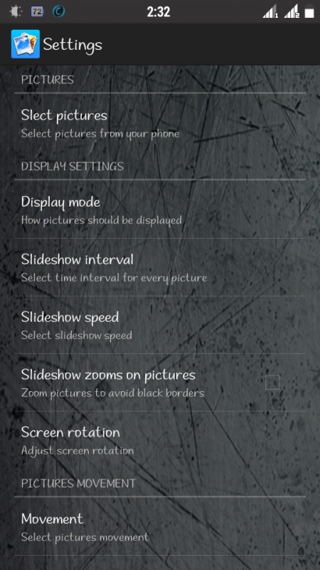এই লাইভ ওয়ালপেপারটিতে আপনি আপনার পছন্দের ছবির ফোল্ডার সিলেক্ট করতে পারবেন, অর্থাৎ একসাথে অনেক ছবি সিলেক্ট করার সুবিধা পাবেন । এটিতে স্লাইড শো ইন্টারভাল, ব্যাকগ্রাউন্ড কালার সহ ফ্রেম রেট পরিবর্তনের অপশন রয়েছে । এই লাইভ ওয়ালপেপারটিতে পছন্দের সিলেক্ট করা ছবি গুলো হোম স্ক্রিনে বিভিন্ন ইফেক্টে চলাফেরা করতে থাকে । এটিও প্লে স্টোর থেকে বিনামূল্যে পাওয়া যাবে এবং রেটিং 4.3 ।
