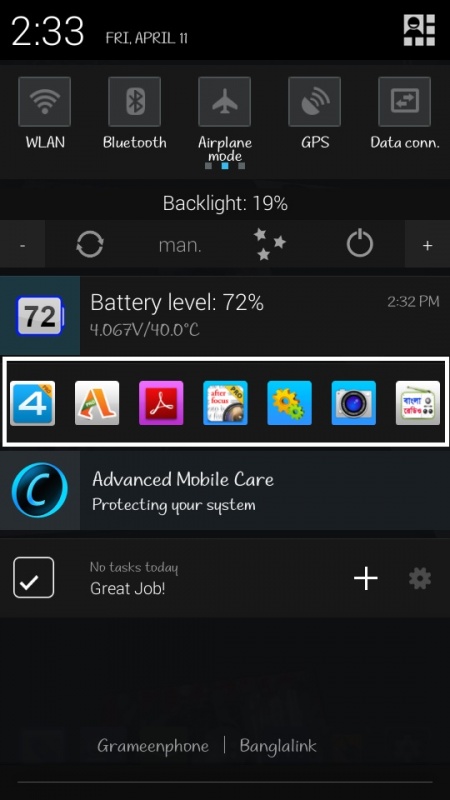 অ্যাপসটির নাম Bar Launcher । লান্সার বলতে আমারা সাধারণত যেটা বুঝি, এটা আসলে সেরকম না । বার লান্সার ব্যবহার করে নোটিফিকেশন প্যানেলে পছন্দের অ্যাপস গুলো সেট করে রাখা যায় । আর আমরা জানি, ফোনের প্রায় অধিকাংশ অবস্থান থেকে নোটিফিকেশন প্যানেল ওপেন করা যায় । তাই অ্যাপসটি ব্যবহার করে পছন্দের এবং গুরুত্বপূর্ণ অ্যাপস গুলো সিলেক্ট করে রাখলে, অনেক দ্রুততার সাথে সিলেক্টেড অ্যাপস গুলো চালু করতে পারবেন । অ্যাপসটি আমার কাছে বেশ ভালো লেগেছে, আশা করি আপনাদেরও লাগবে । প্লে স্টোরে Bar Launcher ফ্রিতে পাওয়া যাবে, এবং রেটিং 4.3 ।