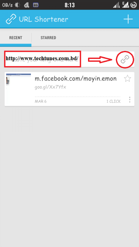 অ্যাপসটির নাম URL Shortener । অ্যাপসটির নামেই তার কার্য বহন করছে, তাই এর সম্পর্কে বেশি বলার প্রয়োজন হবে না। অ্যাপসটি ব্যবহার করে যে কোন ইউআরএল দ্রুত শর্ট এবং শেয়ার করা যাবে এবং অ্যাপসটির মাধ্যমে করা সকল শর্ট ইউআরএল এর তথ্য জমা থাকবে। অ্যাপসটির রেটিং 4.5 এবং প্লে স্টোর থেকে বিনা মূল্যে ডাউনলোড করতে পারবেন। তাই অ্যাপসটি যারা এখনও ব্যবহার করেননি, তার দ্রুত ডাউনলোড করেনিন এবং নিচের স্ক্রিনশট থেকে কার্য পদ্ধতি দেখেনিন।