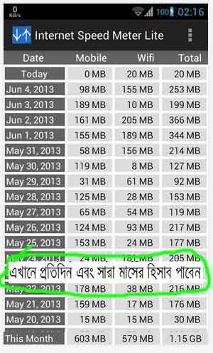 ৩. মোবাইল ডাটা ও ওয়াইফাই ডাটা আলাদা ভাবে দেখাবে, যাতে মোবাইল ডাটা খরচ আপনি মনিটর করতে পারেন।