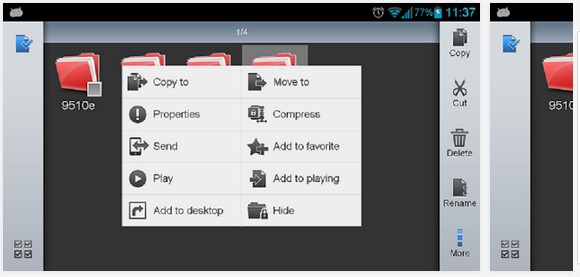 - File Manager – Manage your files like you do on your desktop or laptop using Multiple Select, Cut/Copy/Paste, Move, Create, Delete, Rename, Search, Share, Send, Hide, Create Shortcut, and Bookmark; operations can be performed on local files (on Android device) or remotely (on your computer)