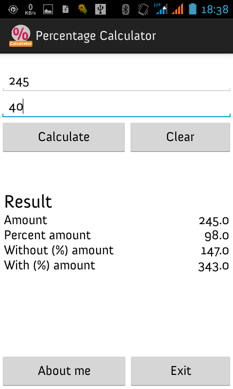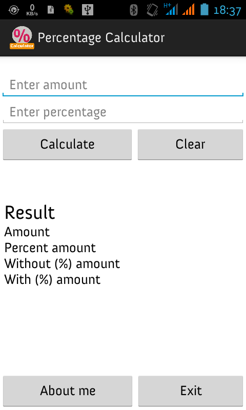 দৈনিক আমাদের যেকোন হিসাব এর জন্য শতকরা বা Percentage হিসবা দরকার হয়। তাই আমি আপনাদের জন্য এই ছোট্ট ক্যালকুলেটরটি তৈরী করলাম। এই অ্যাপটি সহজে যেকেউ ব্যবহার করতে পা্রবে। শুধুমাত্র যে amount এর উপর Percentage বের করতে হবে তা এবং কত Percent তা ইনপুট দিন অতপর Calculate বাটনে প্রেস করুন। ব্যাস! আপনাকে ফলাফল দেখাবে। এই ক্যালকুলেটরটি সাথে রাখলে যখন তখন যেকোন জায়গায় কাজে দিবে।