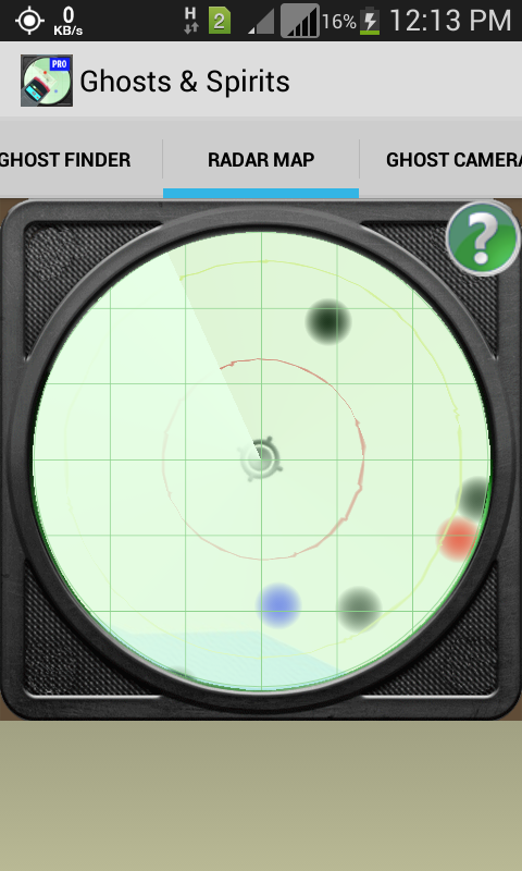 এইটি হলো RADAR MAP এইটা ব্যাবহারের সময় আপনাকে অবশ্যই নেট এবং GPS চালু রাখতে হবে ।এই MAP এ গোল বিত্তের ভিতরে যদি খালি থাকে থাহলে মনে করবেন আপনার এলাকায় কিছু নেই ।কিন্তু এই ছবিটার মত যদি কালো সবুজ ও লাল বিন্দু দেখা যায় তাহলে মনে করতে হবে আপনার আসেপাশে অবশ্যই কিছু আছে । এখানে বিত্তের ভিতরে একটা লাল দাগ দেওয়া বিত্ত দেওয়া আছে ।আর সেই লাল বিত্তে বিন্দু গুলো প্রবেশ করার সাথে সাথে GHOST CAMERA চালু করুন ।