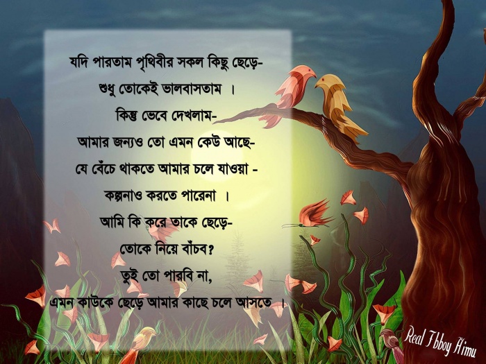 আর এর বাইরে যে ভালোবাসা সেটা হচ্ছে কেবল চোখের ভালোবাসা । অথবা লোক দেখানো ভালোবাসা । এছাড়া অনেকে ভালোবাসাটাকে এক ধরনের Game হিসেবে ধরে নেয় । যা আমার কাছে অনুচিত হলেও নিজের কাছে Best Work ! 😛