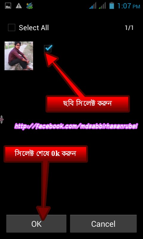 ৯. এইবার এ্যালবামের ছবি সিলক্ট করুন। দুই ভাবে সিলেক্ট করতে পারেন,