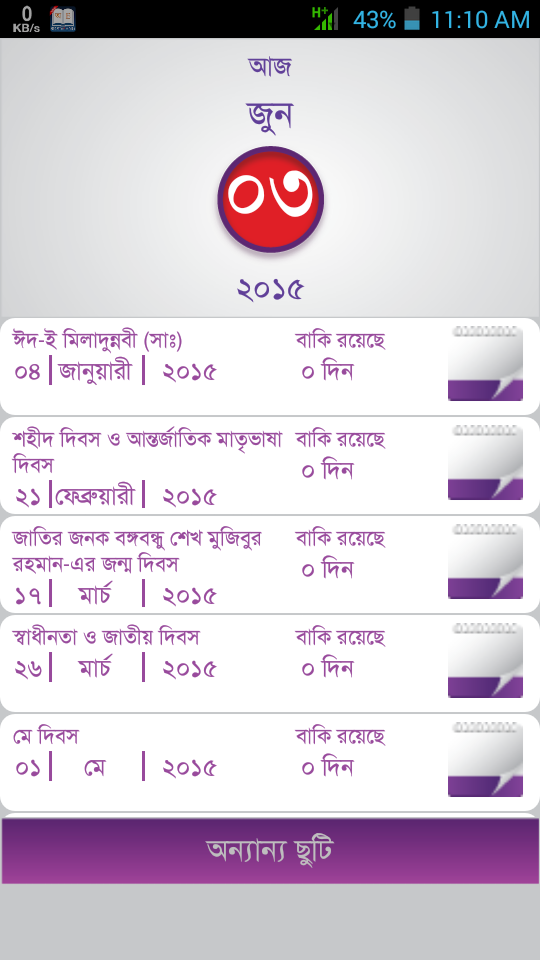 এতে সুন্দর করে সাজনো হয়েছে ছুটির দিন গুলোকে।আমি নিজেও জানতাম না যে কি কি দিবসের কি কি ছুটি।প্রয়োজন মনে হলে আমার মত সংগ্রহ করে রাখতে পারেন।