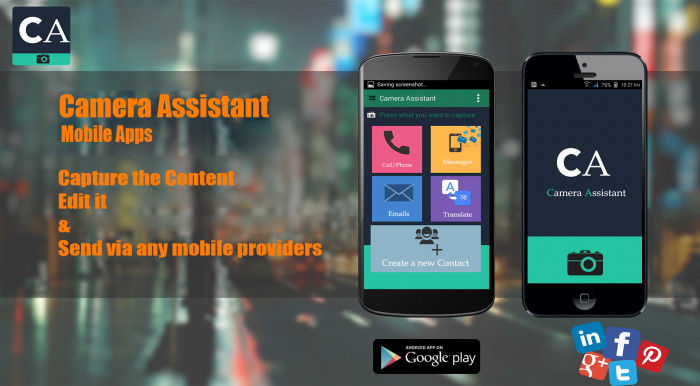 Camera Assistant নামের এই অ্যাপটি খুব সহজেই আপনাকে আপনার মোবাইল ক্যামেরার মাধ্যমে টাইপিং এ সাহায্য করবে। এর মাধ্যমে আপনি যেকোনো জায়গা থেকে কোন নাম্বার, ই-মেইল অ্যাড্রেস,মেসেজ কন্টেন্ট এর ছবি তুলে নিয়ে সেটা আপনার প্রয়োজনমত ব্যবহার করতে পারবেন।