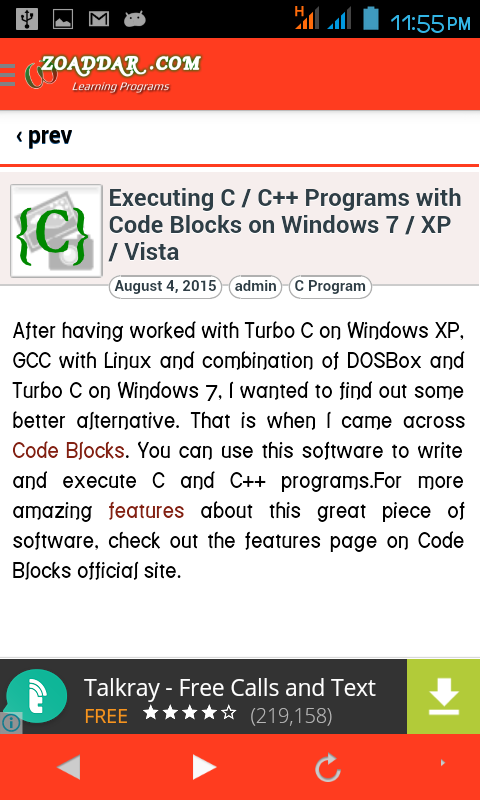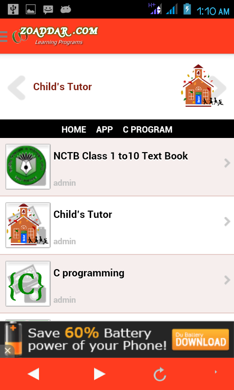 ” বিসমিল্লাহির রাহমানির রাহীম(পরম করুণাময় আল্লাহ্’র নামে শুরু করছি)” আসসালামু আলাইকুম। কেমন আছেন আপনারা সকলে??? আশা করি আল্লাহর রহমতে ভালই আছেন। আপনাদের ভাল টিউন উপহার দিতে পারলে “ইনশাল্লাহ” আমিও ভাল থাকব। আজকে আপনার জন্য নিয়ে আসলাম আমার তৈরি আরেকটি অ্যান্ড্রয়েড অ্যাপ। এটি একটি ওয়েবসাইট ভিত্তিক অ্যান্ড্রয়েড অ্যাপ। মুলত এই অ্যাপটি ওয়েবসাইটের কন্টেন্টকে বিভিন্ন অ্যান্ড্রয়েড ডিভাইস অনুযায়ী সুন্দরভাবে উপস্থাপন করবে। এটি তেরি করতে আমার মডিফাই করা একটি ওয়াডপ্রেস প্লাগিন ব্যবহার করা হয়েছে। যারা C-program, Java-program, Android App Development শিখতে চান, তারা এই অ্যাপটি ইন্সটল করতে পারেন। কারণ, এটা আমার ওয়েব সাইটের কন্টেন্টকে লোড করবে। আর আমার ওয়েবসাইটে নিয়মিতভাবে C-program, Java-program, Android App Development-এর Text Tutorial পাবলিস করা হয়।
