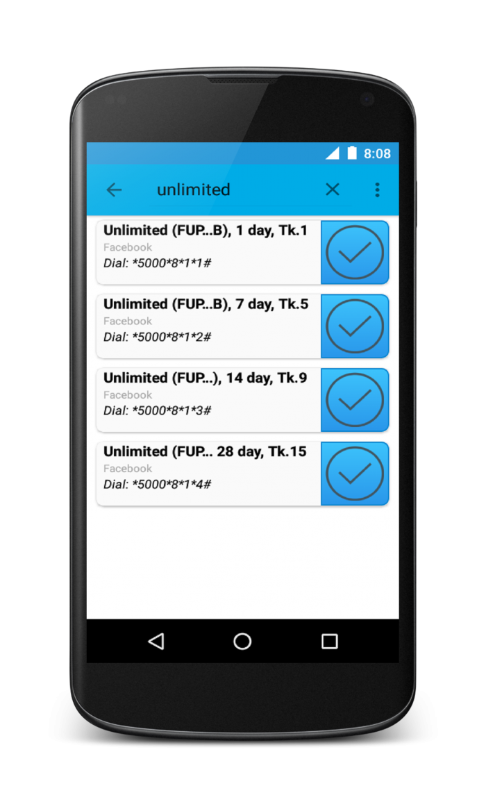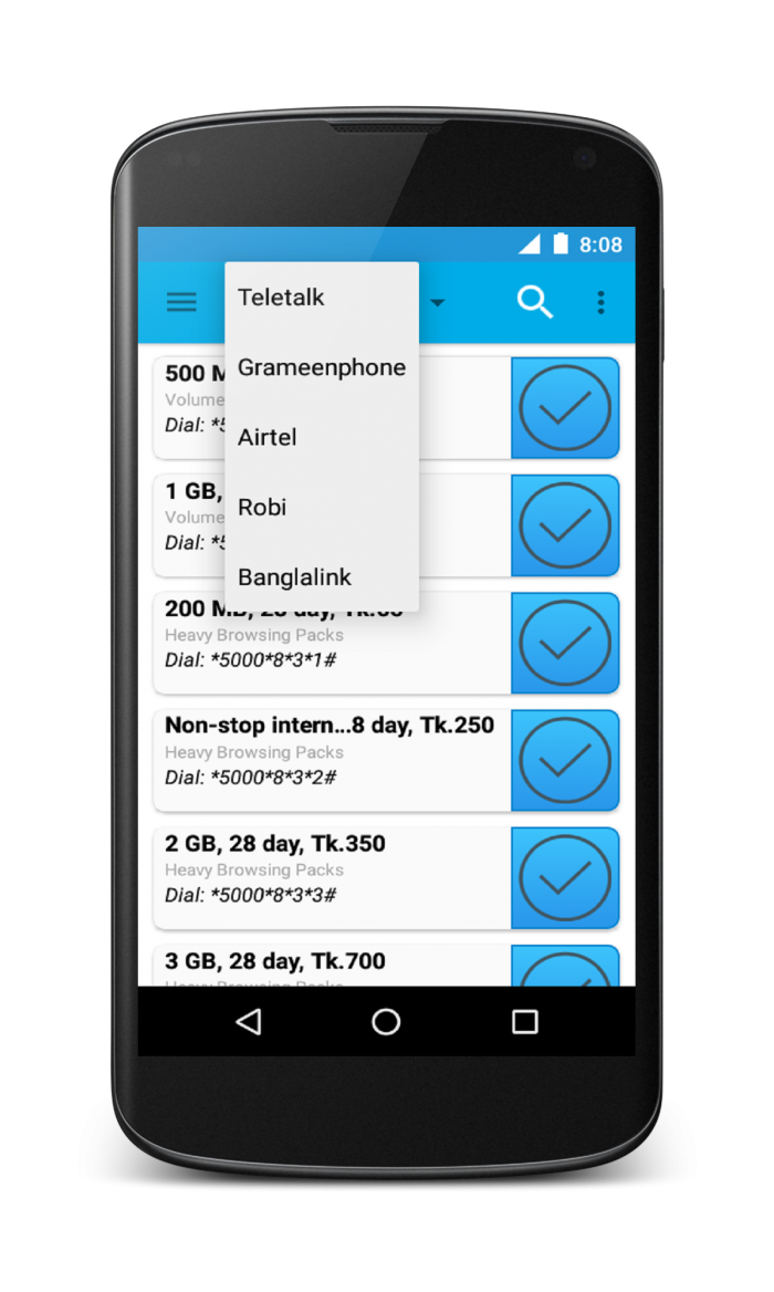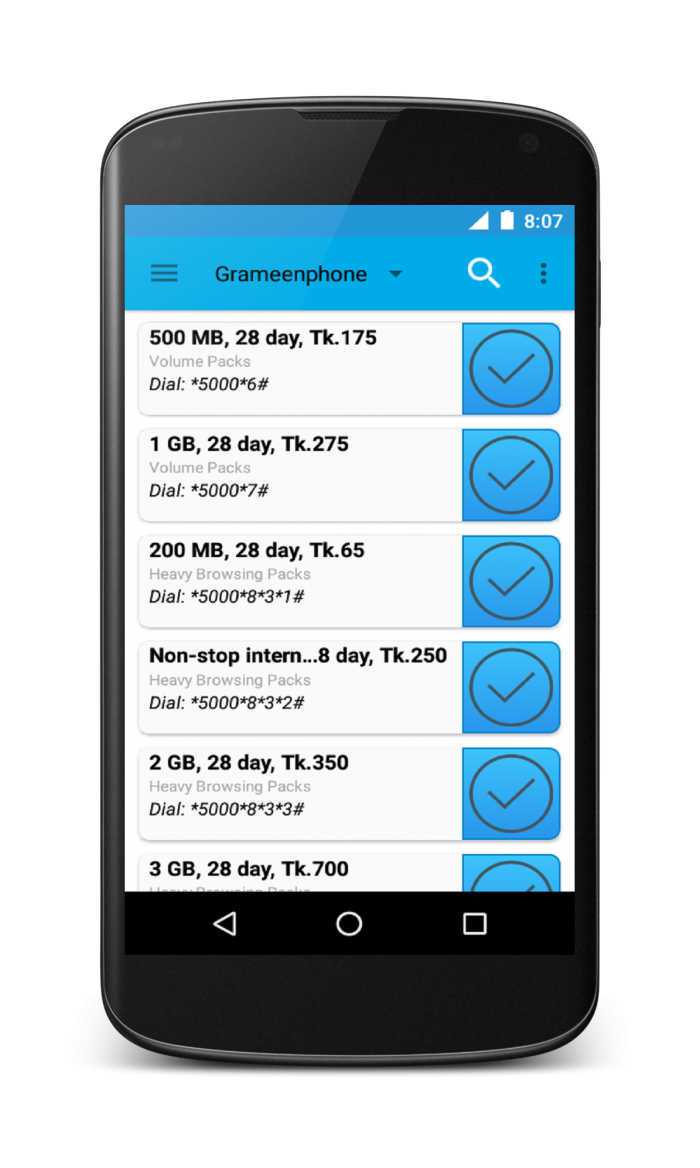 "Internet Data Plans-All BD SIM" আপনাকে দিবে গ্রামীনফোন, বাংলালিংক, টেলিটক, রবি এবং এয়ারটেল - এর ইন্টারনেট প্যাকেজ সম্পর্কিত যাবতীয় সকল তথ্য। বাংলাদেশের সকল সিমের ইন্টারনেট প্যাকেজের অ্যাক্টিভেশন কোড আপনি পাবেন একটিমাত্র অ্যাপে। এতে রয়েছে প্রতিটা প্যাকেজের ডাটা ভলিউম, মেয়াদ, মুল্য সহ অন্যন্য সকল তথ্য।